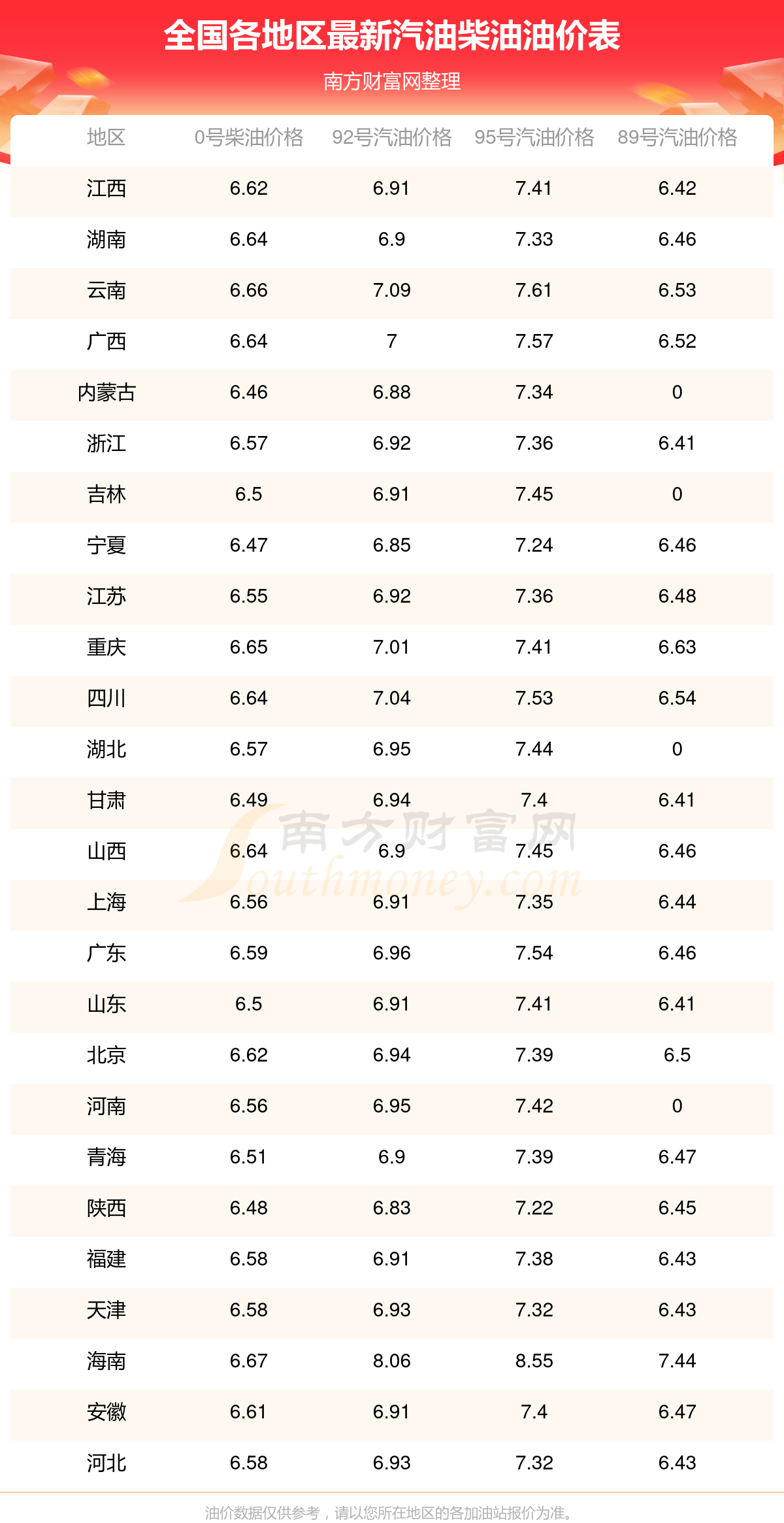 2025年11月13日全國油價調(diào)整及最新汽油價格表