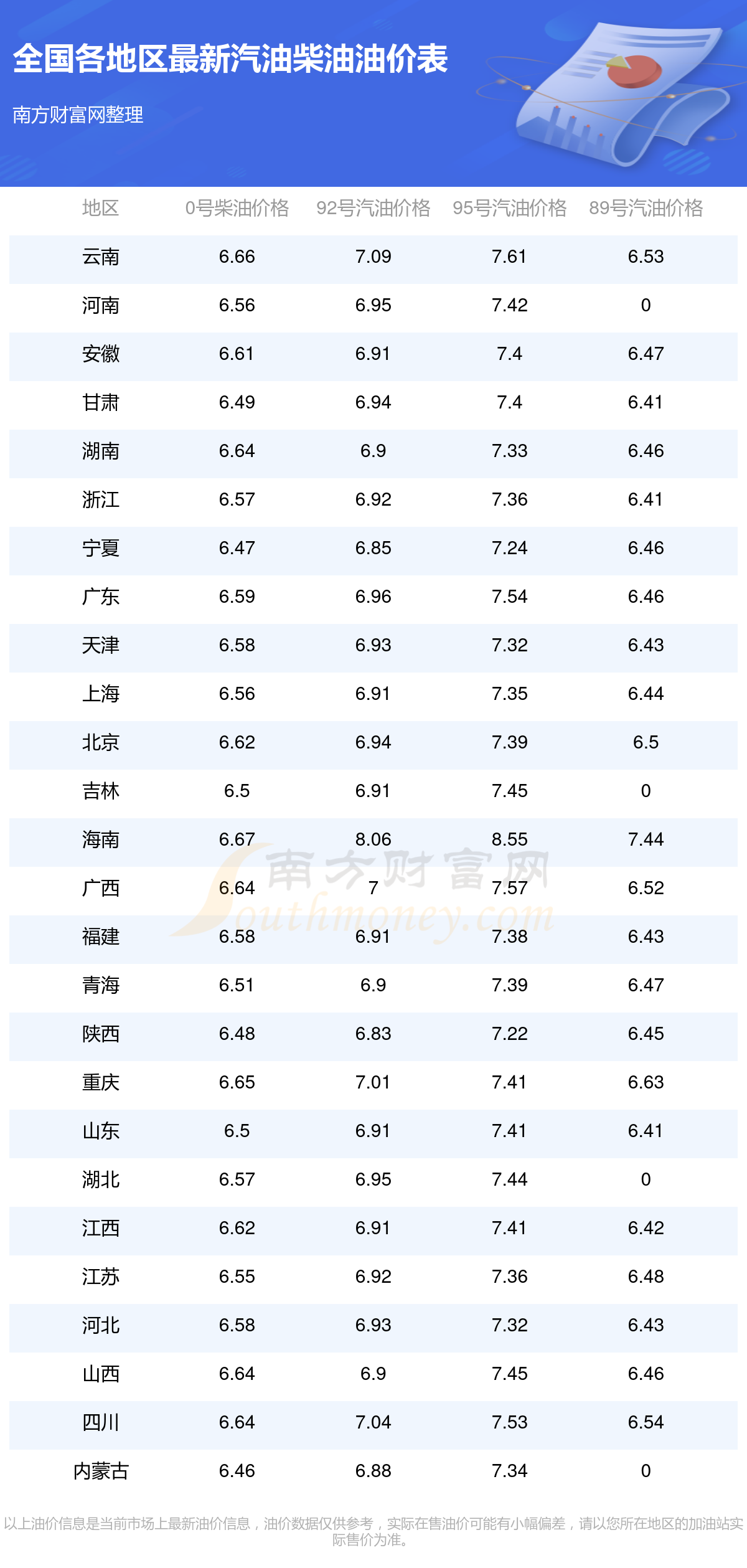 (11月13日)全國油價一覽表