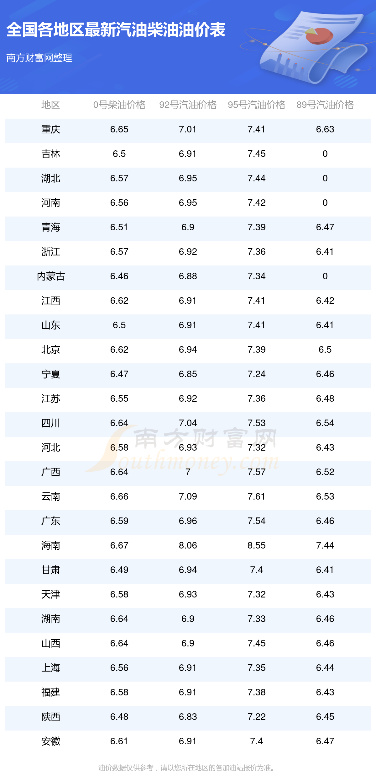 2025年11月13日全國油價調(diào)整及最新汽油價格表