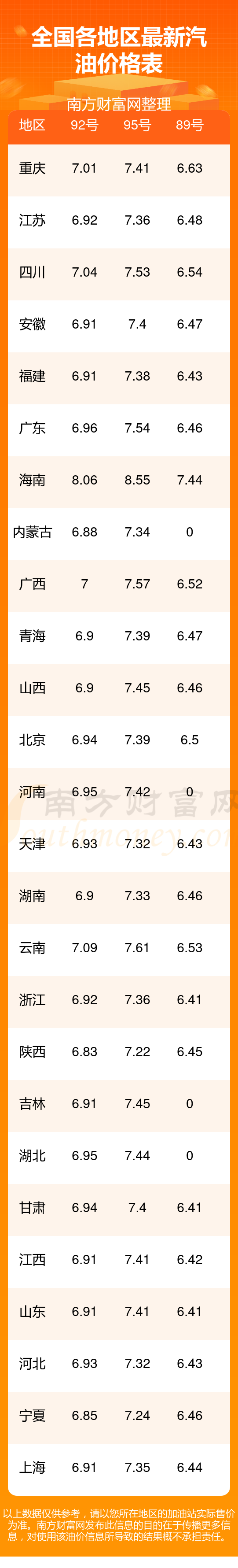 本站提供的油價數(shù)據(jù)僅供參考,具體數(shù)據(jù)以加油站報價為準。