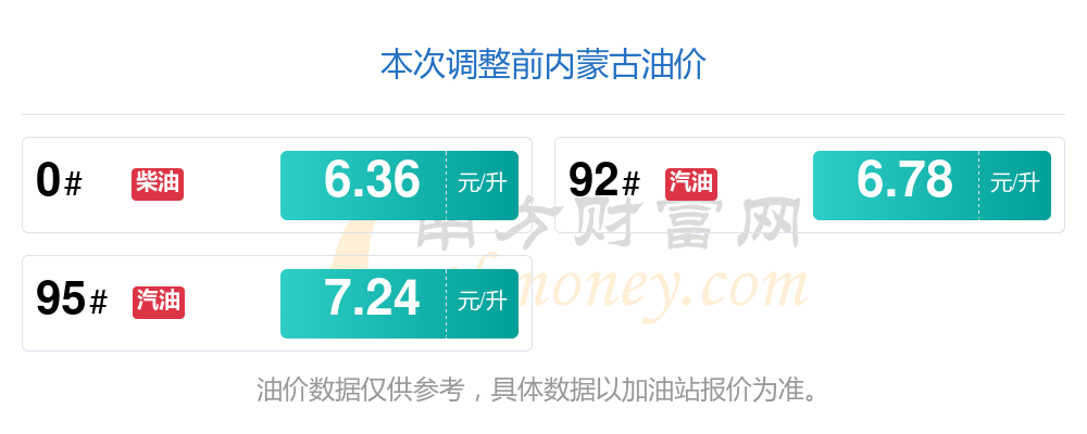 以上數(shù)據(jù)僅供參考,請以您所在地區(qū)的加油站實際售價為準(zhǔn)。南方財富網(wǎng)發(fā)布此信息的目的在于傳播更多信息,對使用該油價信息所導(dǎo)致的結(jié)果概不承擔(dān)責(zé)任。