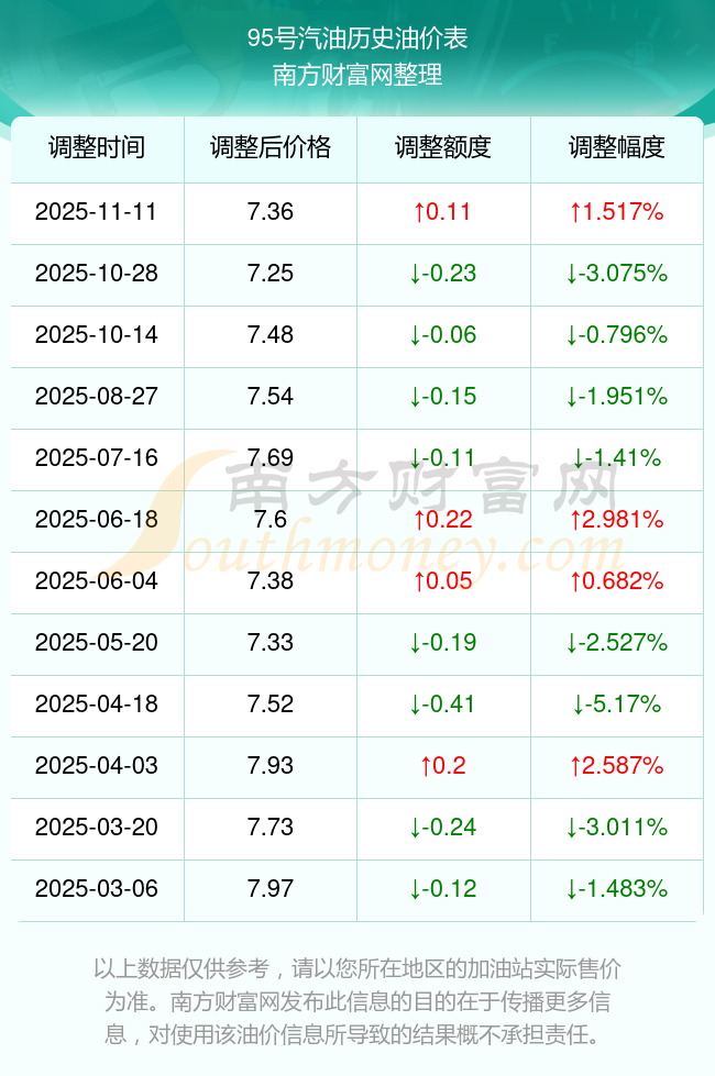 浙江2025年汽油價(jià)格調(diào)整時(shí)間表