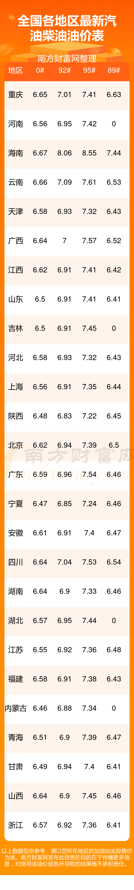 全國(guó)92號(hào)汽油平均價(jià)格為:7元每升,其中,最低為陜西,價(jià)格6.83元/升,最高為海南,價(jià)格8.06元/升。