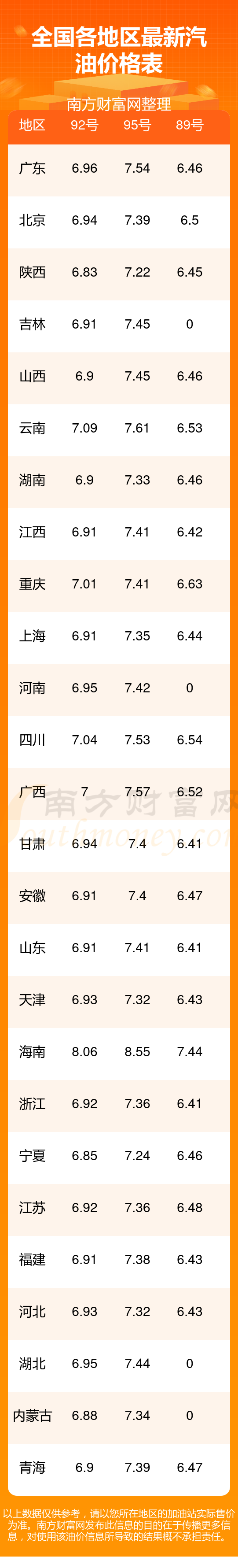 11月13日全國各地汽油油價(jià)今日價(jià)格