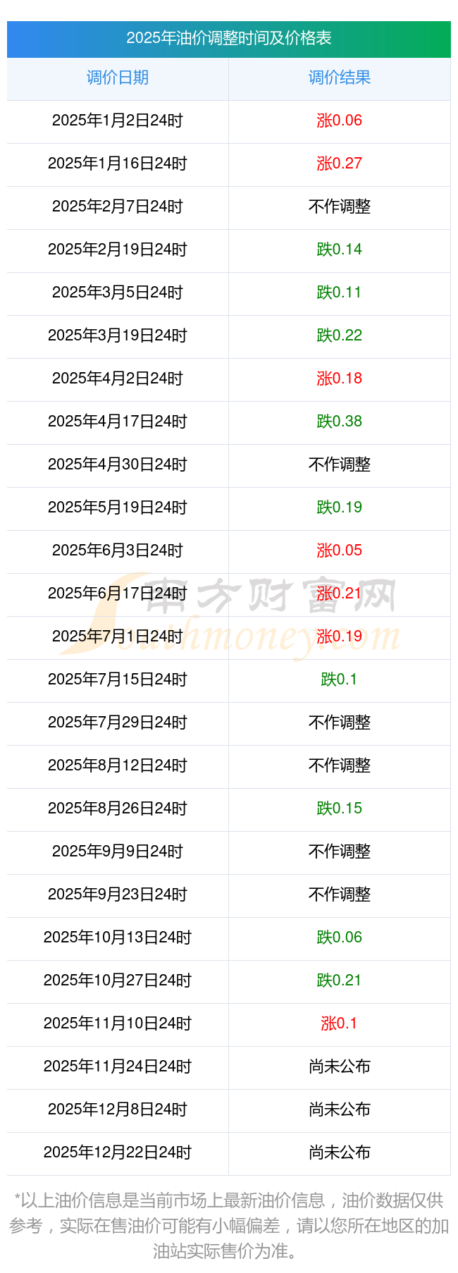 2025年11月13日油價調(diào)整時間及價格一覽表