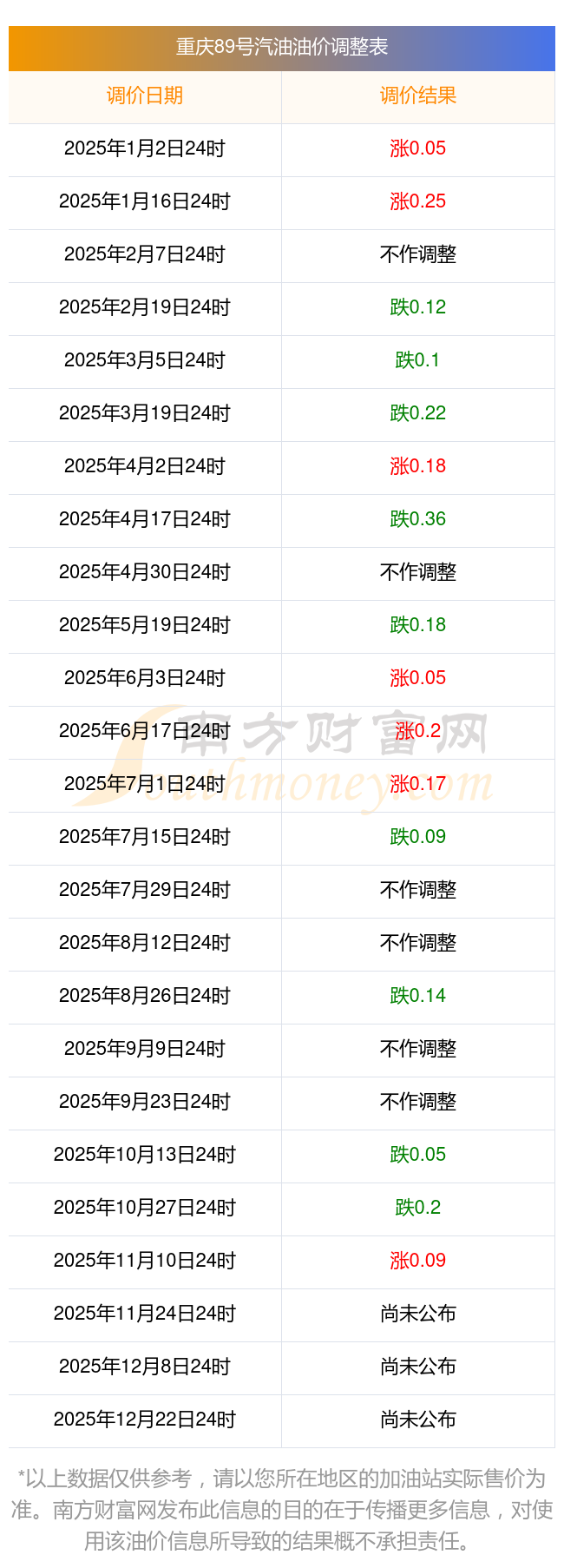2025年重慶最新汽油價(jià)格調(diào)整一覽表
