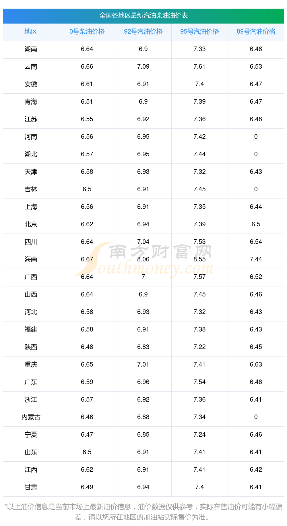 以上油價信息是當(dāng)前市場上最新油價信息,油價數(shù)據(jù)僅供參考,實際在售油價可能有小幅偏差,請以您所在地區(qū)的加油站實際售價為準(zhǔn)。