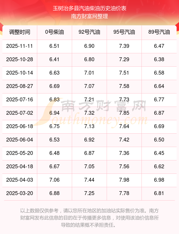 油價數(shù)據(jù)僅供參考,請以您所在地區(qū)的加油站報價為準。南方財富網(wǎng)發(fā)布此信息的目的在于傳播更多信息,對使用該油價信息所導(dǎo)致的結(jié)果概不承擔任何責任。