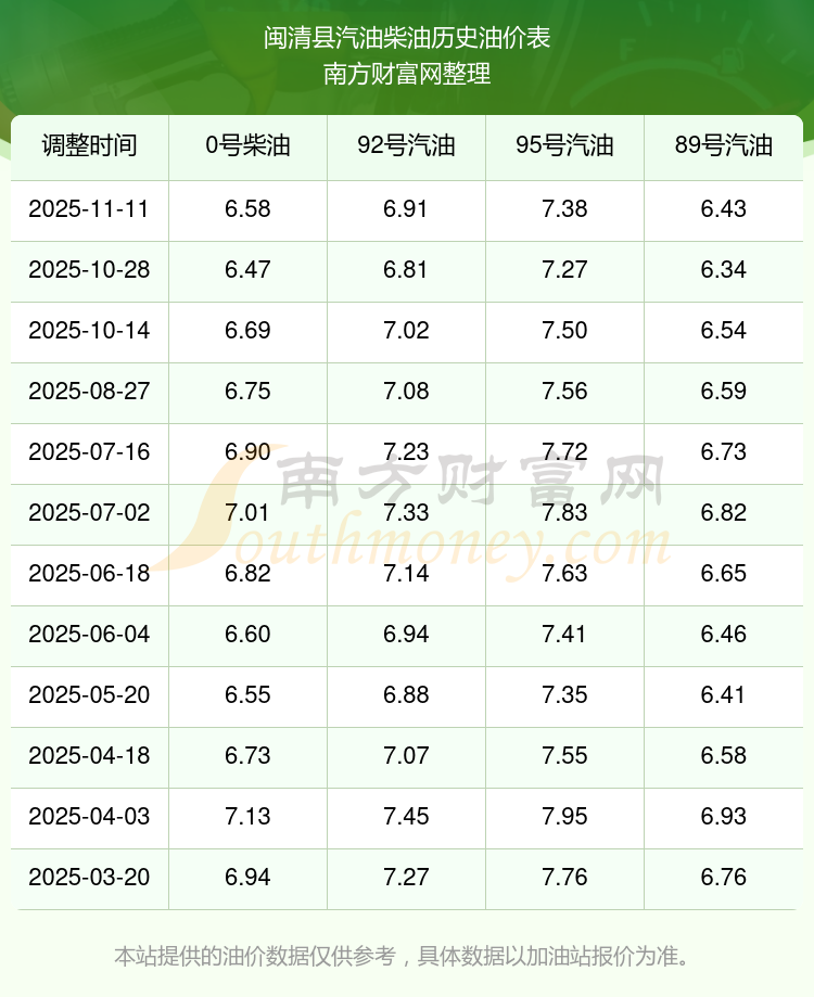 2025年閩清縣油價(jià)調(diào)整時(shí)間表