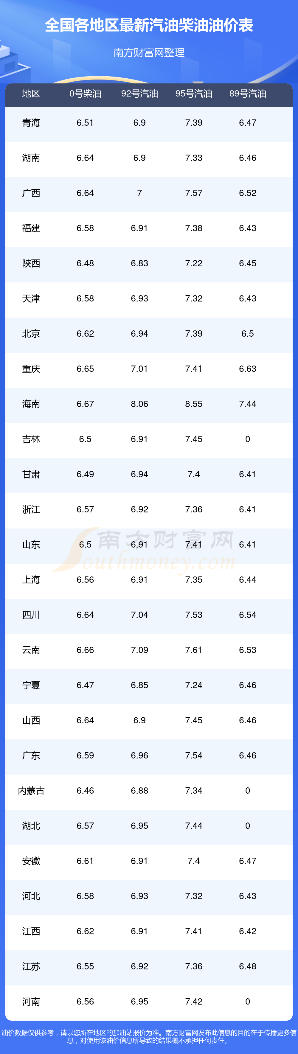 以上油價信息是當(dāng)前市場上最新油價信息,油價數(shù)據(jù)僅供參考,實際在售油價可能有小幅偏差,請以您所在地區(qū)的加油站實際售價為準(zhǔn)。