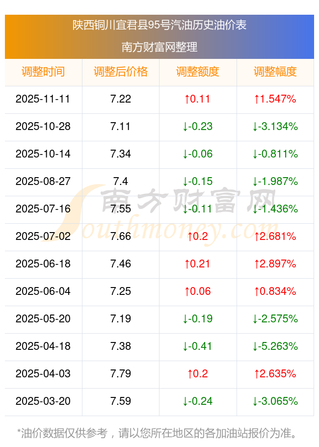 陜西銅川宜君縣95號(hào)汽油歷史油價(jià)表