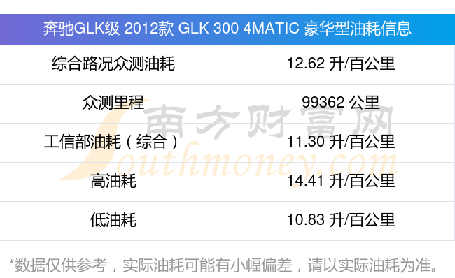 根據(jù)多位車主實測得出數(shù)據(jù),該車型低油耗為10.83升每百公里,高油耗為14.41升每百公里,綜合路況眾測油耗為12.62升每百公里,工信部綜合油耗為11.30升每百公里。