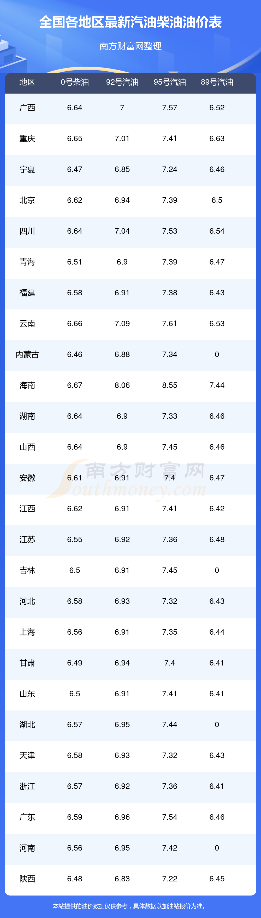 本站提供的油價(jià)數(shù)據(jù)僅供參考,具體數(shù)據(jù)以加油站報(bào)價(jià)為準(zhǔn)。