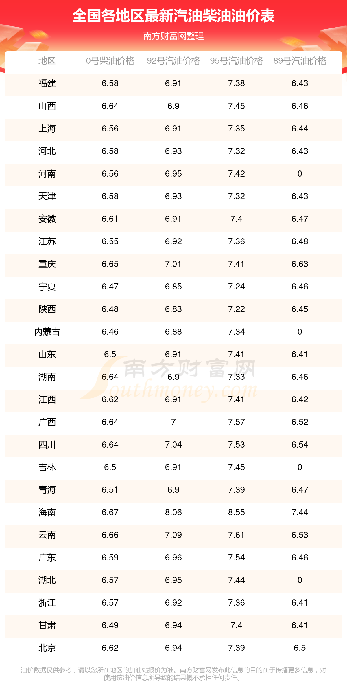 2025年11月13日全國(guó)各地汽油價(jià)格表一覽