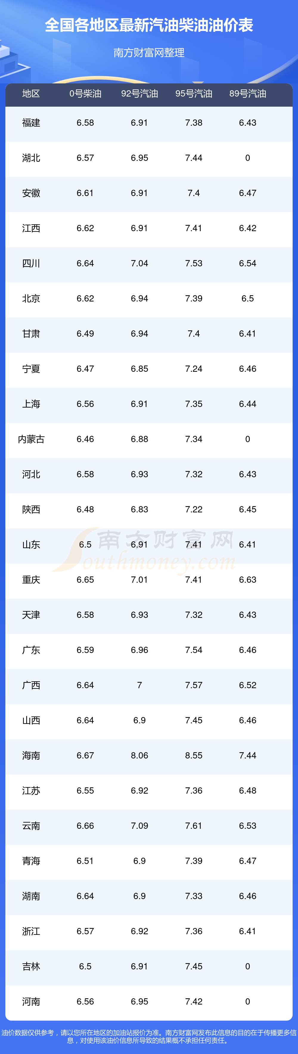 油價(jià)數(shù)據(jù)僅供參考,請以您所在地區(qū)的各加油站報(bào)價(jià)為準(zhǔn)。