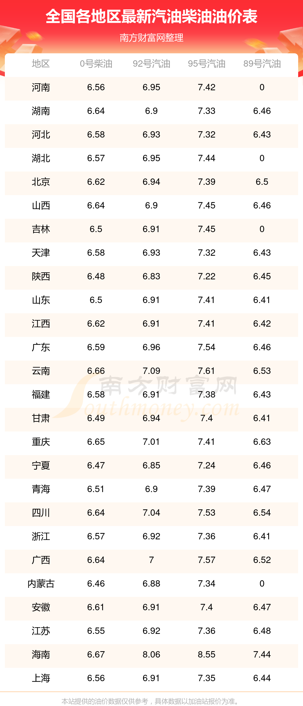 2025年11月13日全國油價調(diào)整及最新汽油價格表