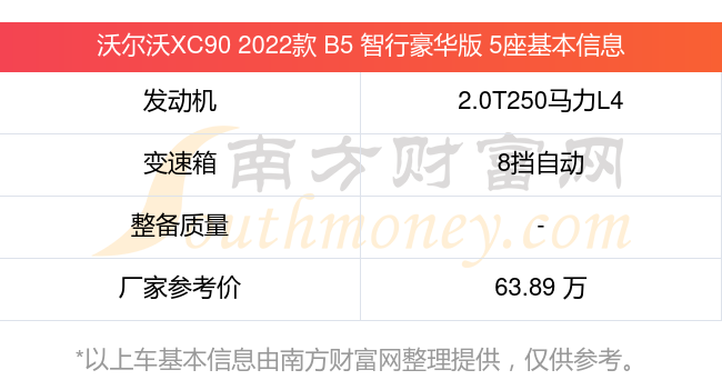 沃爾沃XC90 2022款 B5 智行豪華版 5座動(dòng)力上配備的是一臺(tái)2.0T250馬力L4渦輪增壓發(fā)動(dòng)機(jī),匹配的是8擋自動(dòng)檔變速箱,燃料形式為汽油+48V輕混系統(tǒng),廠家參考價(jià)63.89萬元。