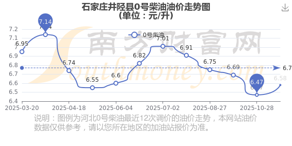 11月13日石家莊井陘縣0號柴油的價格為11月11日調(diào)整后的價格,具體為:6.58元每升,相對上次調(diào)整時間10月28日的油價6.47元每升,上升了0.11元,上升幅達1.7%。