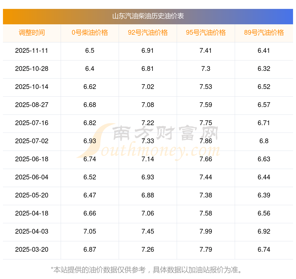 以上數(shù)據(jù)僅供參考,請以您所在地區(qū)的加油站實(shí)際售價(jià)為準(zhǔn)。南方財(cái)富網(wǎng)發(fā)布此信息的目的在于傳播更多信息,對使用該油價(jià)信息所導(dǎo)致的結(jié)果概不承擔(dān)責(zé)任。