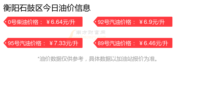 衡陽石鼓區(qū)汽油、柴油11月13日每升最新價格為:0號柴油為6.64元,漲了0.1元;95號汽油為7.33元;92號汽油為6.9元;89號汽油為6.46元,調(diào)整時間為11月11日。