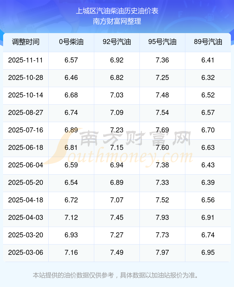 11月13日上城區(qū)汽油、柴油每升的價格是11月11日調(diào)整后的價格:92號汽油為6.92元,增了0.1元,增幅達1.47%;95號汽油為7.36元,增了0.11元,增幅達1.52%;89號汽油為6.41元,增了0.09元,增幅達1.42%;0號柴油為6.57元,增了0.11元,增幅達1.7%。