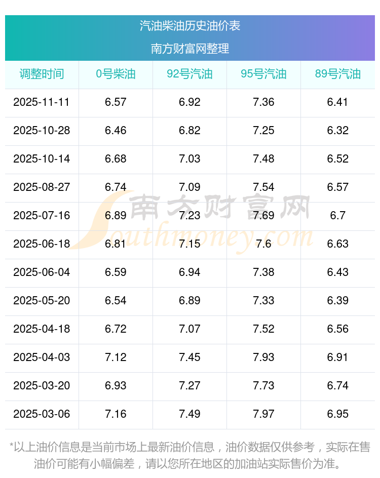 浙江杭州92號(hào)汽油11月13日的價(jià)格為11月11日調(diào)整后的價(jià)格,具體為6.92元/升,相對(duì)上次調(diào)整上升了0.1元。下一輪油價(jià)調(diào)整時(shí)間11月24日24時(shí),距離現(xiàn)在還有11.46天。