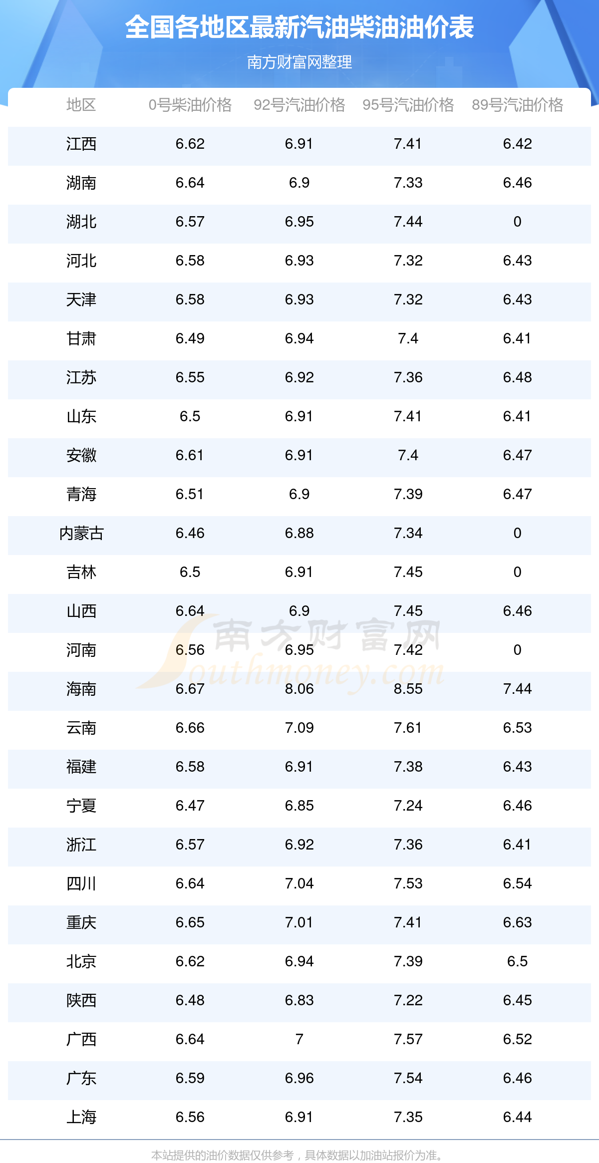 油價(jià)數(shù)據(jù)僅供參考,請(qǐng)以您所在地區(qū)的各加油站報(bào)價(jià)為準(zhǔn)。