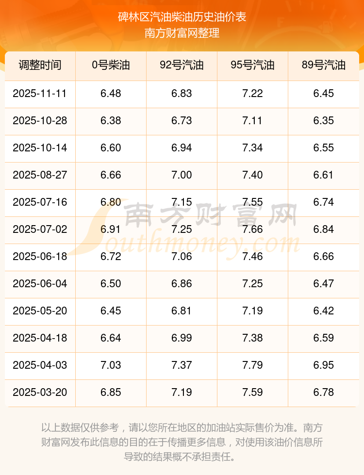 碑林區(qū)歷史油價(jià)表