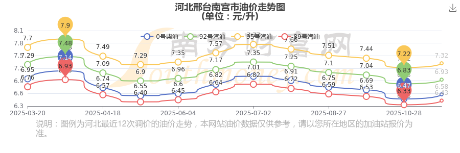 11月13日河北邢臺南宮市95號汽油歷史油價走勢圖