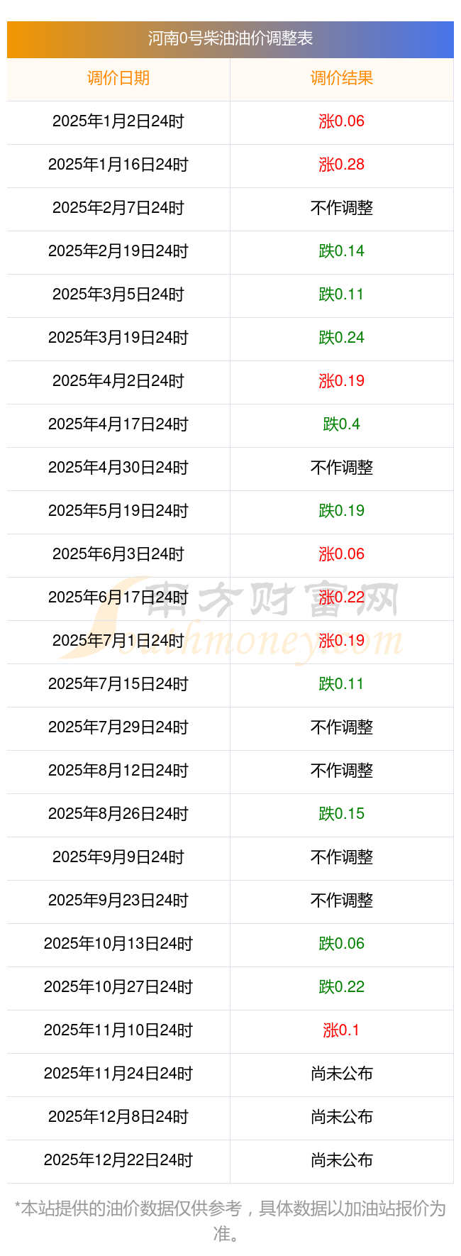 2025年河南最新汽油價(jià)格調(diào)整一覽表