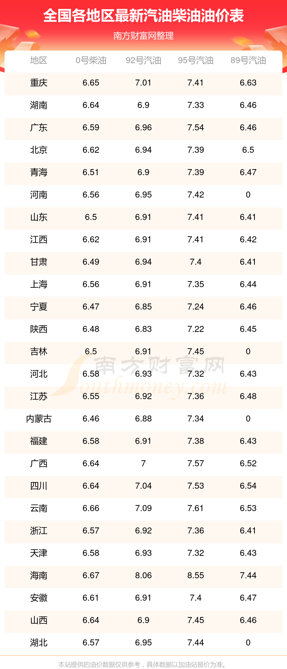 本站提供的油價數(shù)據(jù)僅供參考,具體數(shù)據(jù)以加油站報價為準。