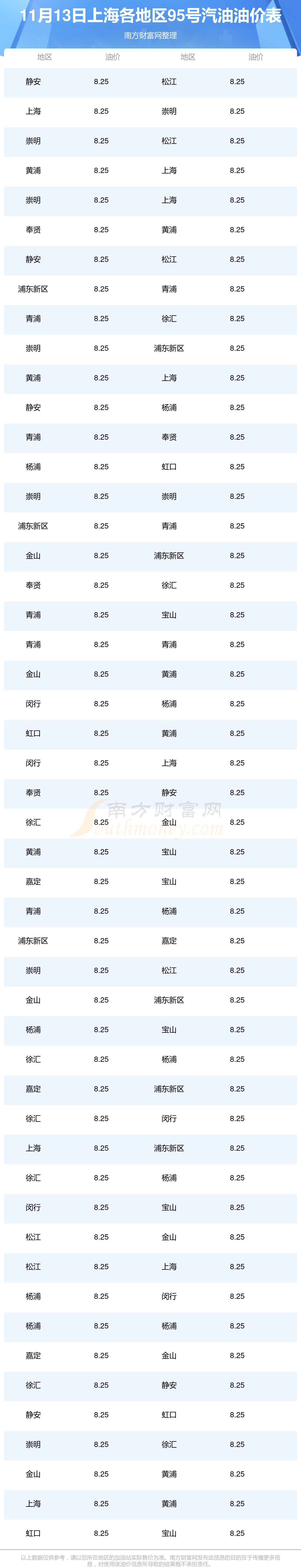 2025年11月13日上海95號(hào)汽油最新價(jià)格一覽表