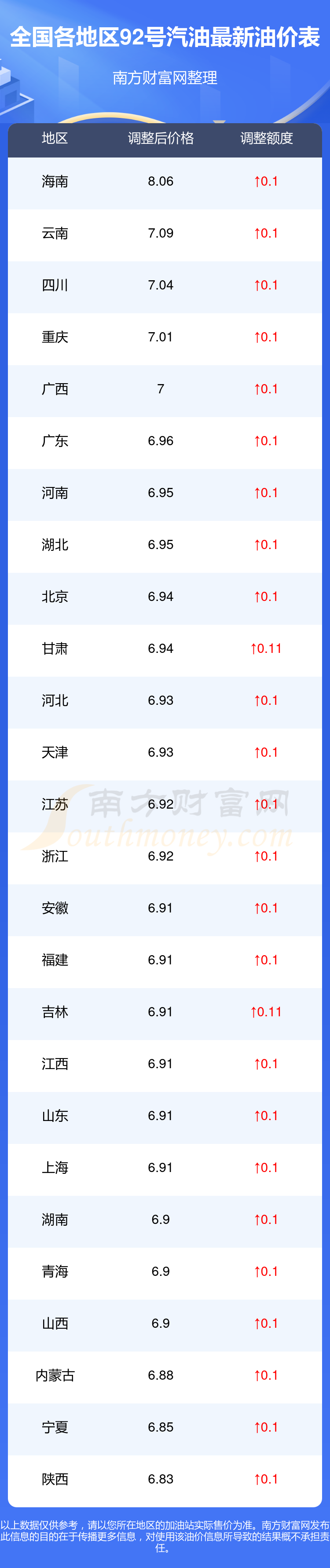 附:全國(guó)各地區(qū)92號(hào)汽油油價(jià)一覽表