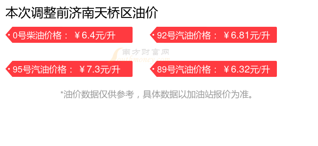 濟南天橋區(qū)汽油、柴油11月13日每升的價格(油價調(diào)整時間11月11日):92號汽油6.91元;95號汽油7.41元;89號汽油6.41元;0號柴油6.5元。