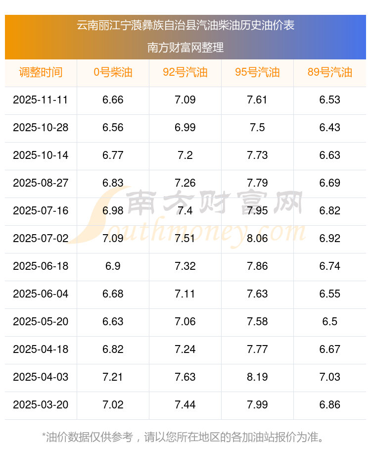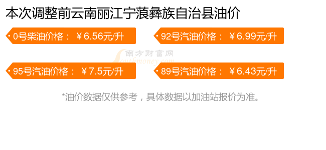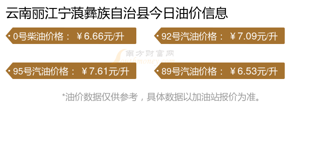 云南麗江寧蒗彝族自治縣汽油、柴油11月13日每升最新價格為:0號柴油為6.66元,漲了0.1元;95號汽油為7.61元;92號汽油為7.09元;89號汽油為6.53元,調(diào)整時間為11月11日。
