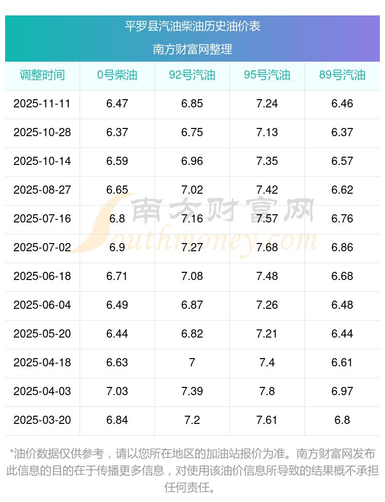 2025年平羅縣油價調(diào)整時間表