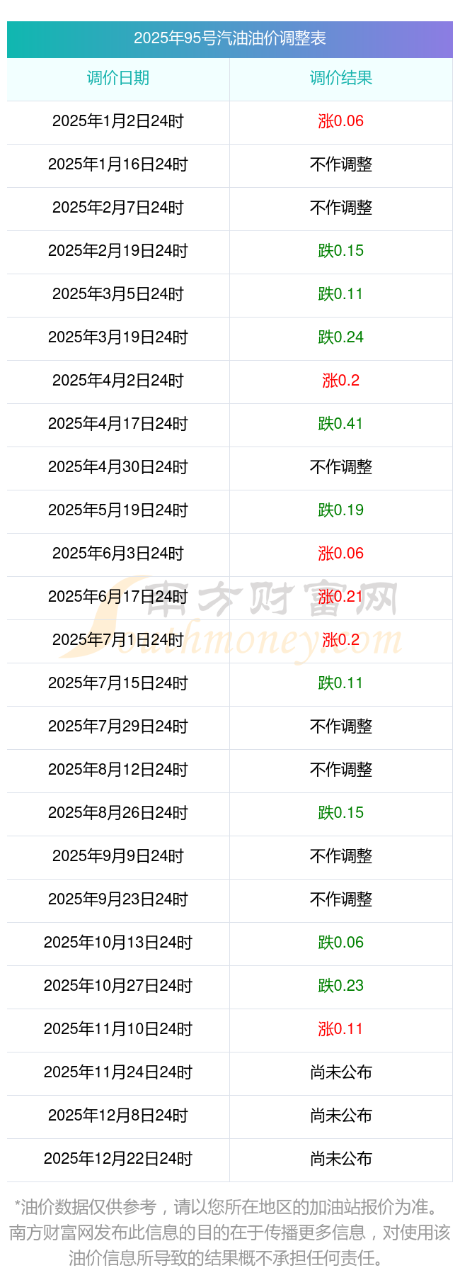 油價調(diào)整最新消息:11月13日,全國95號汽油最新平均價格為:7元每升,調(diào)整時間為11月11日,其中,全國95號汽油最低為陜西,價格為7.22元/升,95號汽油最高為海南,價格為8.55元/升。,下一輪汽油價格調(diào)整時間11月24日24時,距離現(xiàn)在還有11.42天。