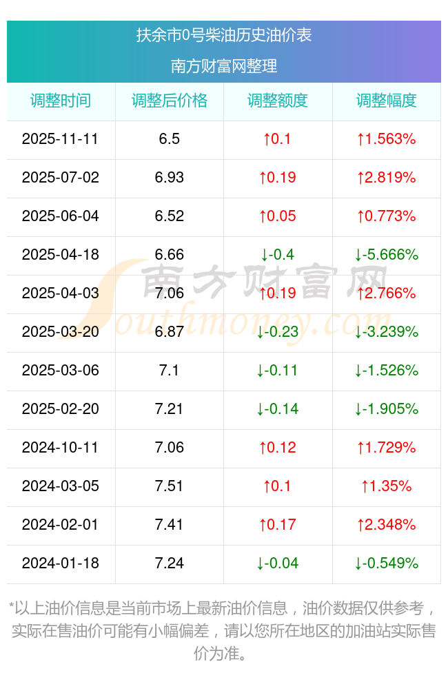 11月13日扶余市0號(hào)柴油歷史油價(jià)一覽表