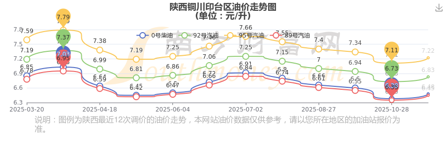 陜西銅川印臺區(qū)歷史油價走勢圖