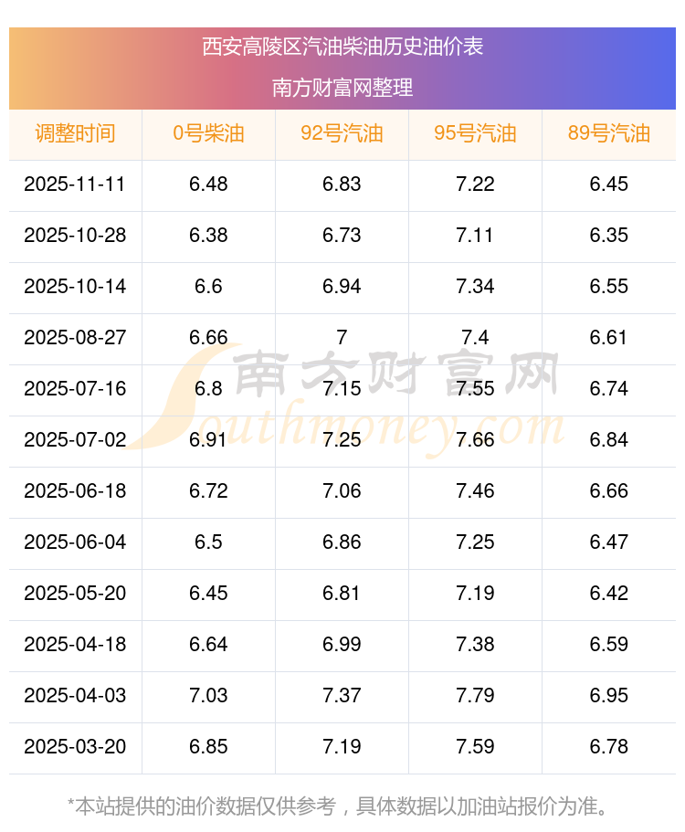 11月13日,西安高陵區(qū)汽油、柴油每升最新價(jià)格為(11月11日調(diào)整后的價(jià)格):92號汽油為6.83元,上升了0.1元,上升幅達(dá)1.49%;95號汽油為7.22元,上升了0.11元,上升幅達(dá)1.55%;89號汽油為6.45元,上升了0.1元,上升幅達(dá)1.58%;0號柴油為6.48元,上升了0.1元,上升幅達(dá)1.57%。