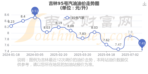 11月13日,吉林95號汽油的價格是7.45元每升,本次的調(diào)整時間為11月11日,對比上次的調(diào)整漲了0.11元,漲1.499%,下次調(diào)整時間為11月24日24時,還有11.39天。