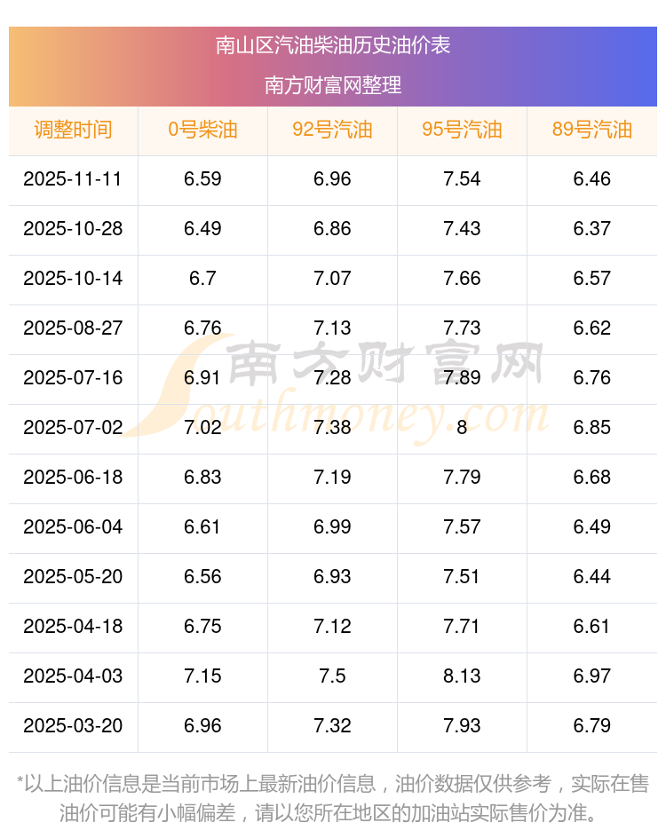 11月13日南山區(qū)汽油柴最新油價(jià)是多少?具體每升為:11月11日調(diào)整后,92號(hào)汽油為6.96元,漲了0.1元,漲幅達(dá)1.46%;95號(hào)汽油為7.54元,漲了0.11元,漲幅達(dá)1.48%;89號(hào)汽油為6.46元,漲了0.09元,漲幅達(dá)1.41%;0號(hào)柴油為6.59元,漲了0.1元,漲幅達(dá)1.54%。