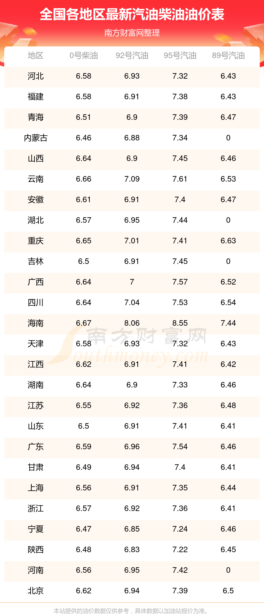油價數(shù)據(jù)僅供參考,請以您所在地區(qū)的加油站報價為準(zhǔn)。南方財富網(wǎng)發(fā)布此信息的目的在于傳播更多信息,對使用該油價信息所導(dǎo)致的結(jié)果概不承擔(dān)任何責(zé)任。