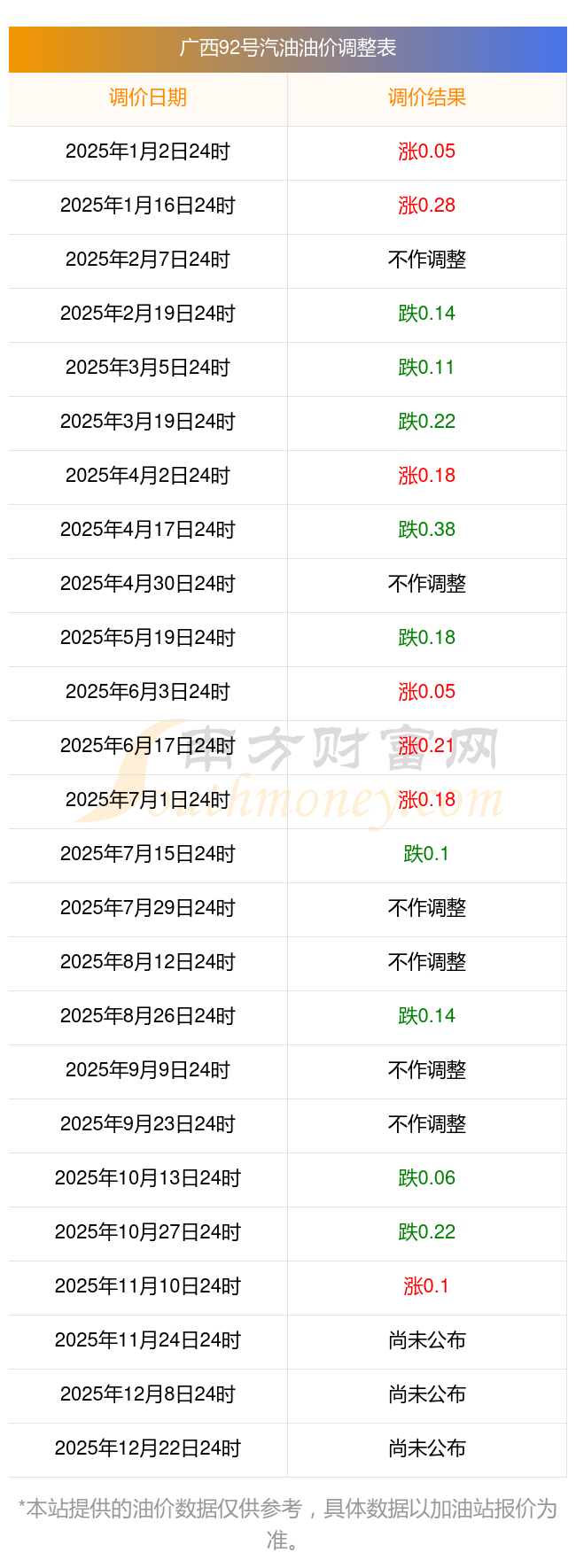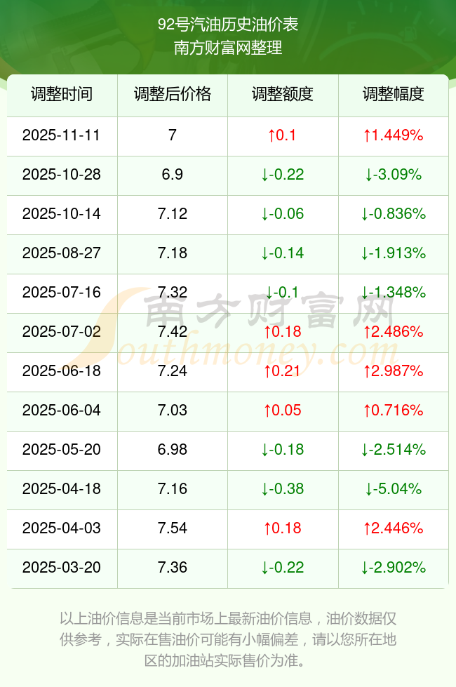 2025年油價(jià)調(diào)整時(shí)間表及價(jià)格