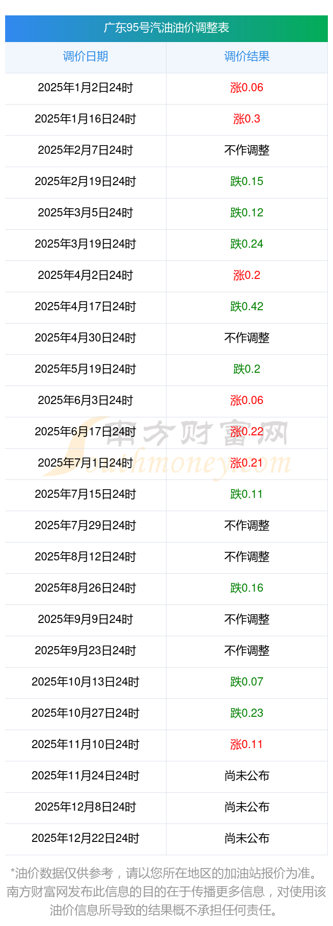深圳汽油、柴油11月13日每升的價格為(本輪油價調(diào)整時間為11月11日):92號汽油6.96元;95號汽油7.54元;89號汽油6.46元;0號柴油6.59元。