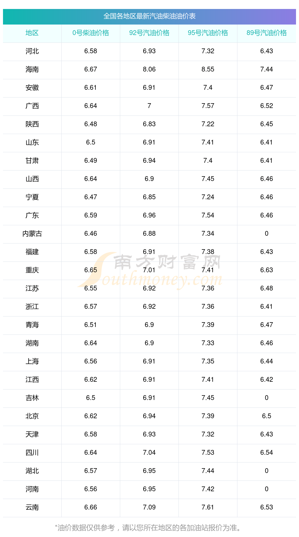 油價數(shù)據(jù)僅供參考,請以您所在地區(qū)的加油站報價為準(zhǔn)。南方財富網(wǎng)發(fā)布此信息的目的在于傳播更多信息,對使用該油價信息所導(dǎo)致的結(jié)果概不承擔(dān)任何責(zé)任。