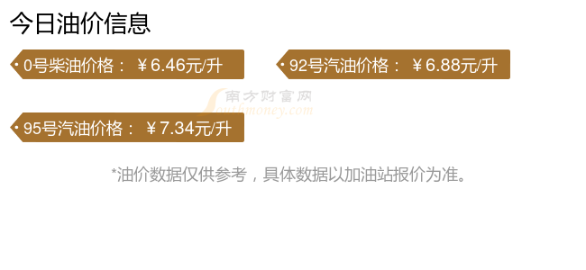 油價(jià)數(shù)據(jù)僅供參考,請(qǐng)以您所在地區(qū)的各加油站報(bào)價(jià)為準(zhǔn)。