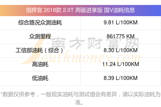 根據(jù)車主實測數(shù)據(jù),該車型低油耗為8.39L/100km,高油耗為11.24L/100km,綜合路況眾測油耗為9.81L/100km,工信部綜合油耗為8.30L/100km。