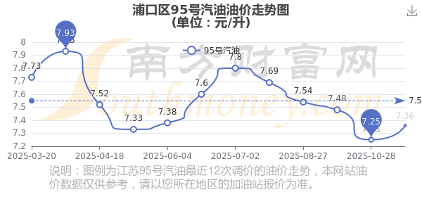 浦口區(qū)95號(hào)汽油歷史油價(jià)走勢(shì)圖
