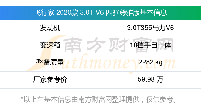 飛行家 2020款 3.0T V6 四驅(qū)尊雅版搭載了一臺3.0T355馬力V6雙渦輪增壓發(fā)動機,采用10擋手自一體自動檔變速箱,常規(guī)整備質(zhì)量2282kg,廠家參考價59.98萬元。